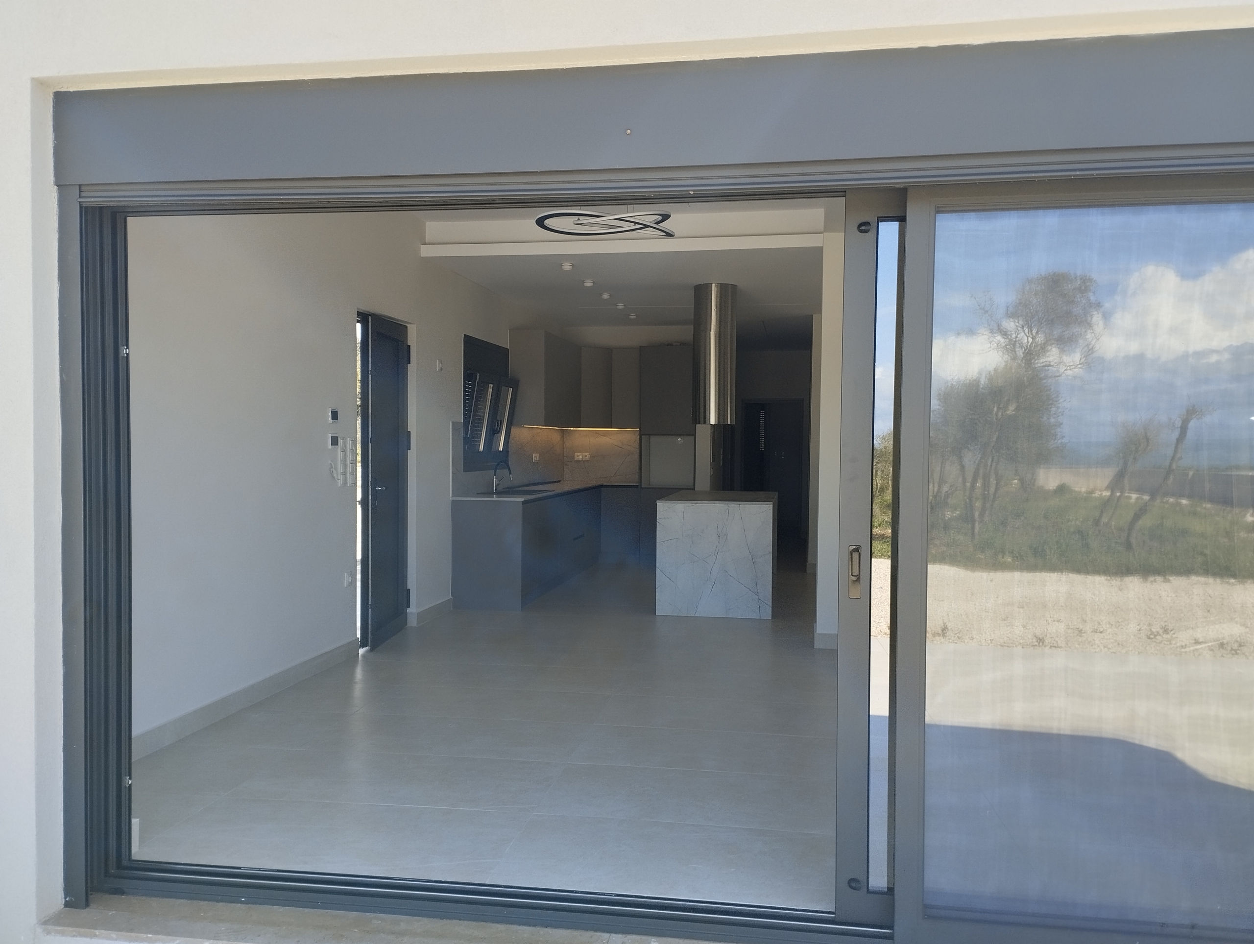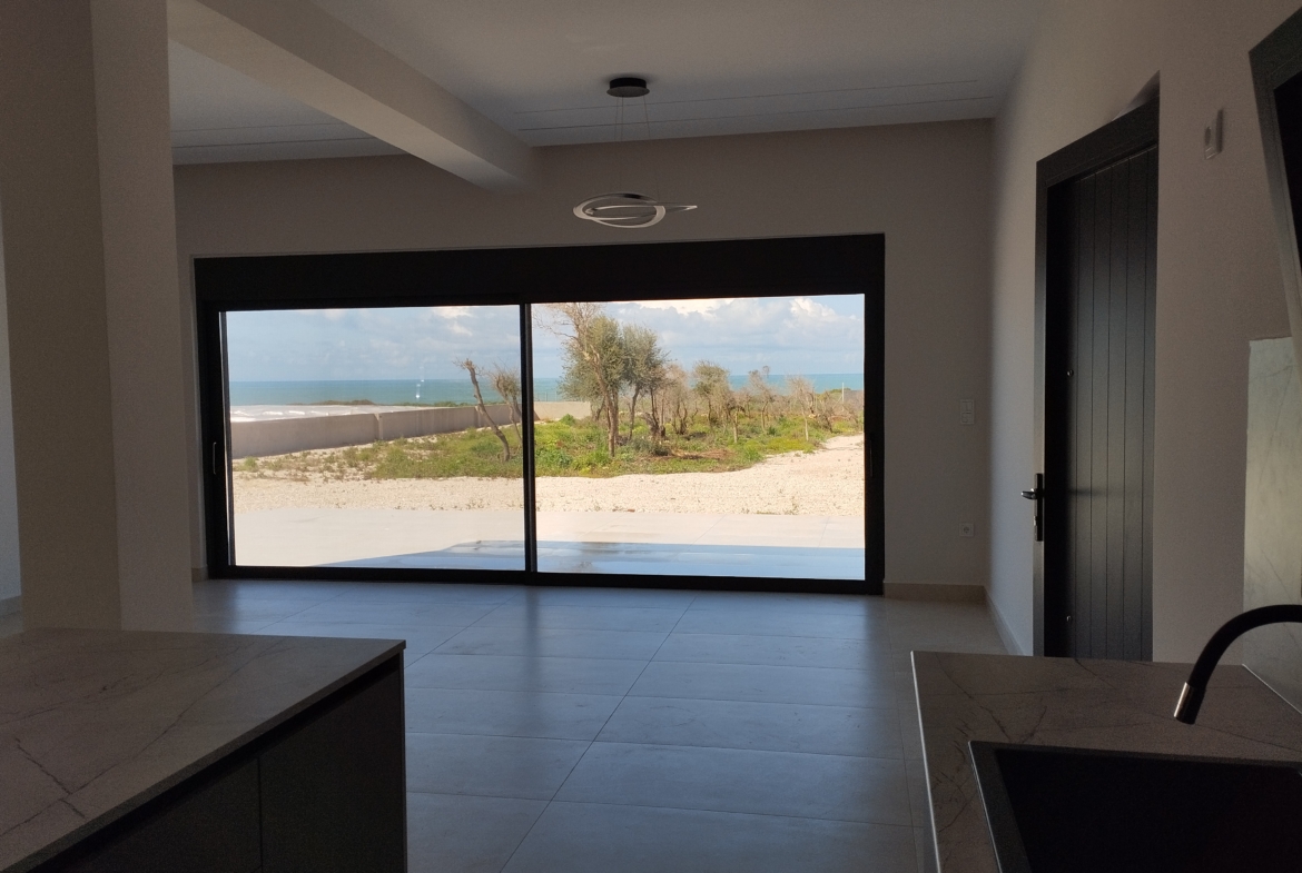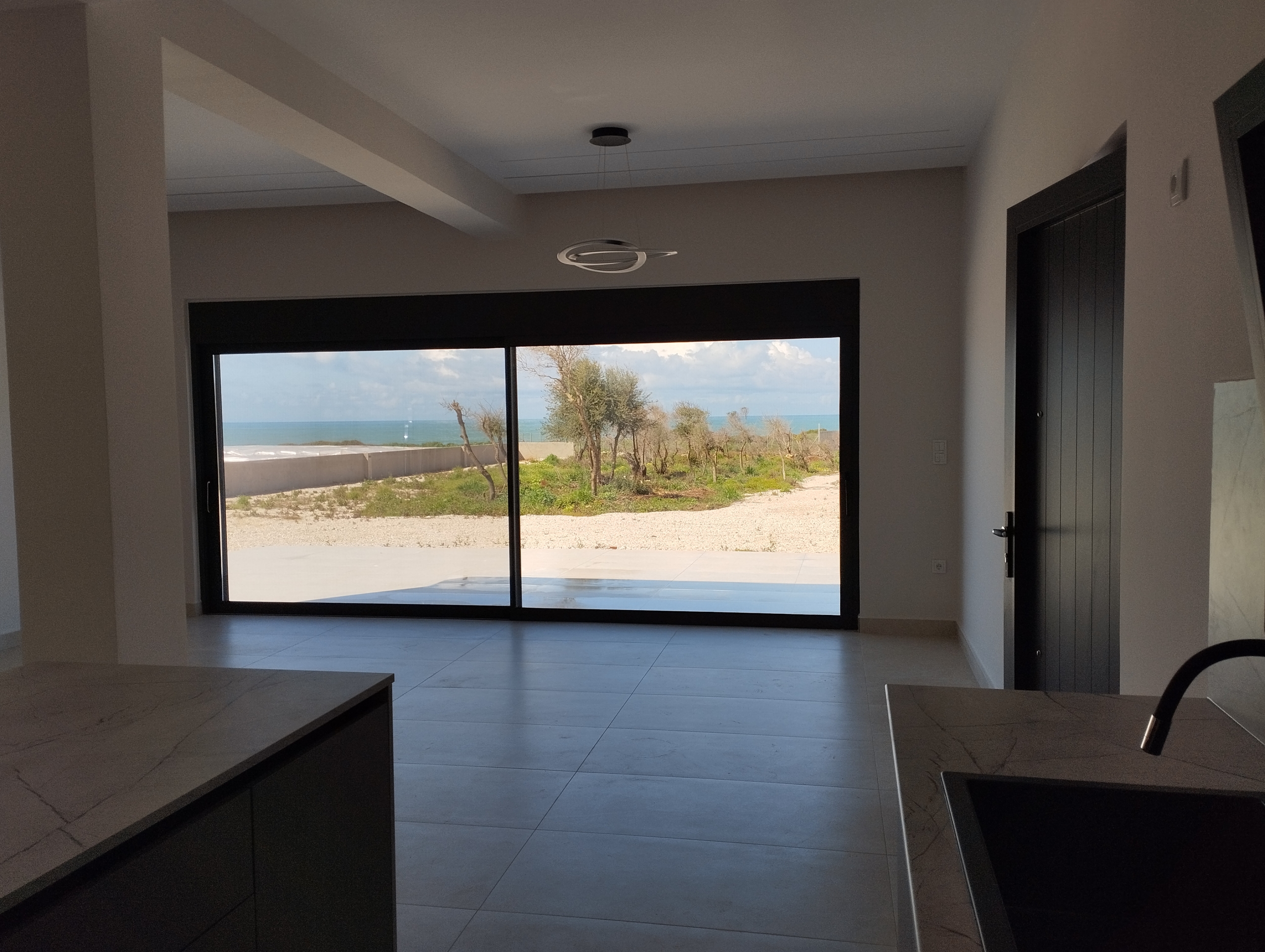 Experience luxurious seaside living with this exceptional 109 m² home near the peaceful village of Agia Kyriaki in Messinia. Set on a spacious 5,000 m² plot, the property features 2 elegant bedrooms, 2 bathrooms, and a bright open-plan living room with kitchen filled with natural light. The house is equipped with a heating pump in all rooms, electric shutters, double-glazed windows, security door, insect screens throughout, and wireless internet with sockets in every room. Enjoy stunning sea views, a private outdoor area, and the authentic Mediterranean lifestyle just a few steps from the beach. A private concrete pathway leads directly to the sea, offering comfort and complete privacy for your swim.